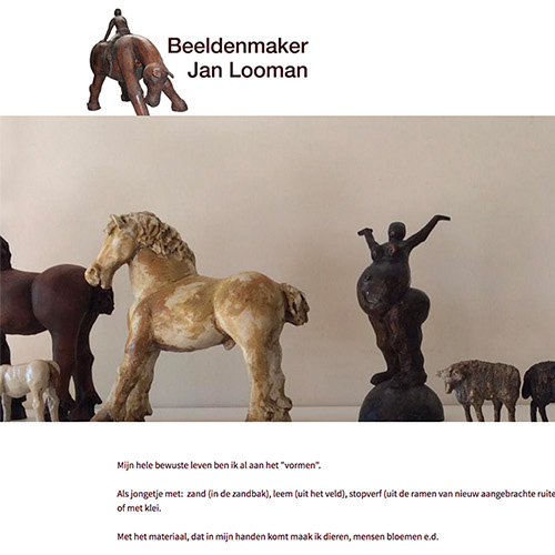 Jan Looman is beeldenmaker. Hij maakt beelden van steengoed, steen, brons en keramiek. De gekozen kleuren hebben te maken met het gebruikte materiaal. Lichte tintverschillen, tot sur ton. Het is een lowbudget website met 1 pagina, waar alles op te vinden is! Kijk op www.beeldenmakerjanlooman.nl     …